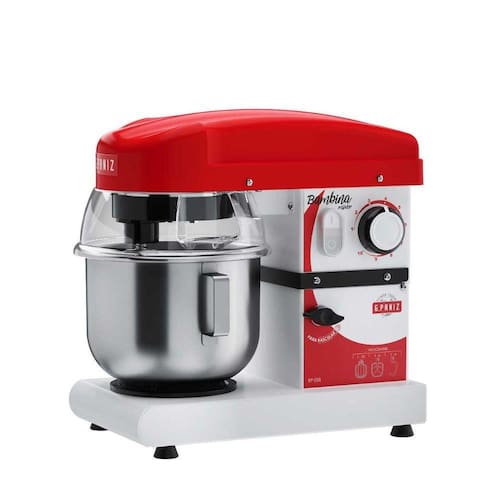 - Potência, durabilidade, baixa ruído e alta produtividade fazem da batedeira planetária Bambina Mixer a sua melhor assistente na confeitaria; - Para produção de massas de consistência leve e média; - Motor silencioso e potente garante uma alta produtividade em regime de trabalho intenso; - Estrutura robusta que garante estabilidade e durabilidade; - Cuba removível em aço inox com alça, facilitando o manuseio e a limpeza; - Protetor de respingos com abertura para adição dos ingredientes; - Sistema de transmissão por polias gerando menor ruído; - Sistema de abertura por basculamento facilitando a remoção da cuba e batedores; - Sistema eletrônico de troca de velocidades; - 3 batedores.