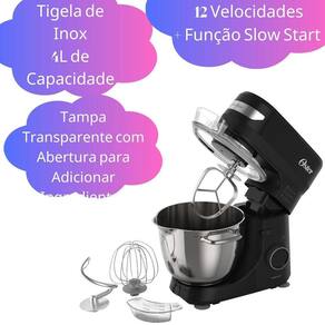 Batedeira Planetaria 850W De Potencia 12 Velocidades Partida Suave Tampa Transparente Anti Respingo 4L 127V 3 Batedores A Batedeira Planetária Oster Bowl Inox III é um novo modelo de batedeira que combina um corpo de inox e plástico com 850w de potência e 12 velocidades para oferecer um desempenho excepcional. A tigela inox de 4L é resistente a choques térmicos e tem uma circunferência de 66cm, permitindo que você prepare grandes quantidades de alimentos de uma só vez. Com três batedores diferentes - um para massas leves, outro para massas médias e outro para massas pesadas - você pode preparar receitas de todos os tipos com facilidade. A tampa medidora de 80ml facilita a adição de ingredientes durante o preparo. Os pés com ventosas garantem que a batedeira permaneça firme durante o uso, enquanto o design moderno torna-a uma adição elegante à sua cozinha. A função partida suave garante que a batedeira comece devagar antes de aumentar gradualmente a velocidade, evitando respingos e bagunças. A tampa transparente com abertura permite que você verifique o progresso do preparo sem precisar interromper o processo. Além disso, com um porta fio na base e um cabo com 104cm, a batedeira é fácil de usar, limpar e armazenar. Com um consumo de apenas 0,85kW/h e uma tomada de 10a de 2 pinos, você pode usá-la sem se preocupar com o aumento da conta de luz. Com todas essas características incríveis, esta batedeira é uma excelente escolha para quem busca qualidade e eficiência na hora de preparar receitas deliciosas em casa. Ela ainda possui 1 ano de garantia de fábrica para assistência técnica com o fabricante. Sobre o produto:- Marca: Oster- Modelo: OBAT641- Voltagem: 127V Não é bivolt - Cor: Preto e Prata- Registro Inmetro: SGS BRA21/01088- Medidas do produto A x L x P : 34 x 38 x 23 cm- Peso do produto: 3800 gramas Itens inclusos:1 - Batedeira Planetária1 - Tigela Inox de 4 litros1 - Batedor de claras em neve1 - Batedor de massas leves1 - Batedor de massas pesadas1 - Tampa Anti respingo1 - Medidor