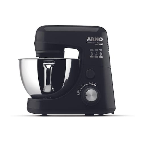 NãoClaras em neves perfeitas em menos de 1 minuto. Alcança toda tigela!A Arno Planetária Deluxe Inox reúnepraticidade e eficiência: bate, mistura, amassa e sova a massa rapidamente, deixando-a homogênea, até mesmo a mais pesada.Movimento planetário, que garante perfeita homogeneidade às mais variadas receitas.600W de potência que garantem rapidez no preparo de receitas leves, e força para a preparação de massas médias e pesadas; é até 2 vezes mais rápida que uma batedeira comum**;Tem 8 velocidades, com função início suave (velocidade inicial mais lenta, para evitar respingos).Conta com três batedores:O globo é para incorporar ar às receitas. Utilize-o na preparação de mousses, recheios, chantilly, claras em neve e similares.A pá é perfeita para misturar massas leves e médias. Utilize-a na preparação de bolos, biscoitos, tortas, nhoques, cheesecakes e similares.O gancho é eficiente no preparo de massas pesadas, como pães, massas de pizza e similares.Um dos batedores tem a exclusiva tecnologia turbo alcance: é revestido e por isso alcança o fundo da tigela, o que ajuda a chegar em resultados perfeitos muito mais rápido. Sua tigela é de aço inox, tem graduação interna, bico e alça-caneca.**Comparada à batedeira Arno Facilita, em testes realizados com 4 claras em julho/2015 por um laboratório independente.