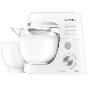Descubra a potência e a elegância da Batedeira Planetária Mondial BP-03W-2B, perfeita para quem ama cozinhar com praticidade e alto desempenho. Com 700W de potência, ela é ideal para preparar desde bolos fofinhos até massas pesadas, como pães e pizzas.