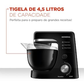 A Batedeira Planetária Mondial BP-03-B - 700W é ideal para que deseja fazer suas receitas com mais praticidade. Com tigela de 4,5L de capacidade, tem alta performance para preparar massas mais pesadas. São 12 velocidades e 3 batedores para que você obtenha o melhor resultado na hora de criar seus pratos. A Batedeira Planetária Mondial possui ainda tampa antirrespingos que evita sujeira pela bancada e sistema de abertura que torna mais prático o uso e remoção dos batedores. Prepare seus pães, cremes, chantilly, claras em neve e muito mais com a sua batedeira Mondial. Com alimentação 220V e na cor preta com detalhes em prata, é o eletrodoméstico que faltava na sua cozinha!