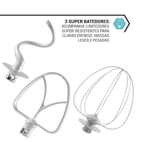 Ela conta com 3 super batedores super-resistentes, para claras em neve, massas leves e pesadas. Tudo isso, com 12 velocidades + função turbo. Você escolhe a melhor opção para cada tipo de preparo!
