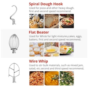 A máquina é versátil e vem equipada com 3 acessórios um gancho para massa, um batedor plano e um batedor de arame, garantindo os resultados necessários para qualquer receita. Além disso, oferece 3 velocidades diferentes para melhor controle 130 RPM, 233 RPM e 415 RPM , graças ao seu potente motor de 600 W que garante durabilidade e confiabilidade para atender a todos os seus requisitos de mixagem.