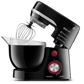 Com uma tigela grande de 4,5L, a batedeira planetária tem 12 velocidades e 3 tipos de batedores, para massas leves, médias e pesadas. Ela conta com 700W de potência, sistema de abertura automática e tampa antirrespingos. Esta batedeira planetária traz a união de potência com performance, o que faz dela a melhor opção para preparar desde bolos como de chocolate e de fubá, até as massas mais pesadas, inclusive de pão. Quer saber qual a diferença da batedeira planetária? Seu batimento gira ao redor de si e da tigela ao mesmo tempo, garantindo que os ingredientes da sua receita sejam misturados de forma homogênea e com mais rapidez. Sua TIGELA comporta receitas com muitos ingredientes. Ela acompanha uma espátula que ajuda você a retirar todo restinho da massa que ficar na tigela. O sistema de abertura automática e tampa antirrespingos permitem você acrescentar ingredientes sem ter que desligar.