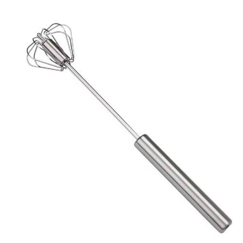 Batedor misturador culinário em aço inoxidável com design giratório para misturas rápidas e uniformes. Possui cabo anatômico em inox, leve e firme, garantindo maior controle no uso. Ideal para bater ovos, misturar massas leves e preparar bolos. Perfeito para uso doméstico ou profissional em confeitaria, panificação e culinária em geral.Acompanha copo