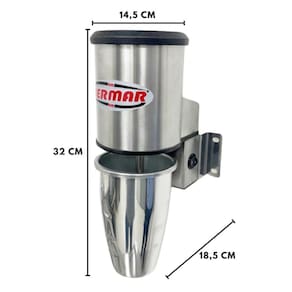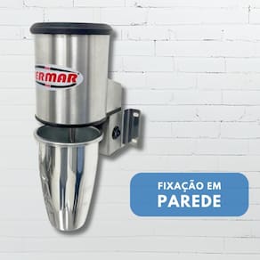 Possui estrutura confeccionada em aço inoxidável 430 e copo em alumínio com marcação de 3 níveis: 100 ml, 250 ml e 450 ml.