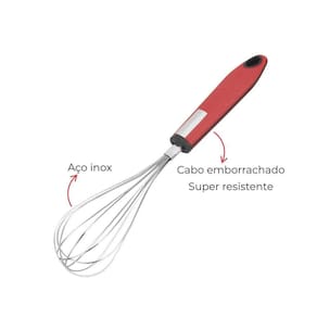 Batedor de Ovos Fouet Manual em Aço Inox Unyhome Cor: Vermelho Batedor de Ovos Fouet Manual em Aço Inox - Unyhome