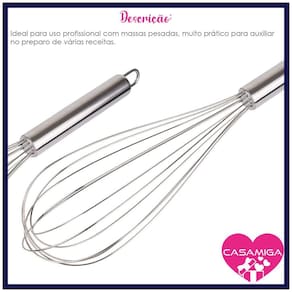Batedor de Ovos Fuê Fouet Inox 40cm Massa Bolo Ideal para com massas pesadas, muito prático para auxiliar no preparo de várias receitas. Feito inteiramente em inox é fácil de higienizar, é atóxico, não altera o sabor dos alimentos, além de ser muito resistente. Características: - Largura: 7,6cm - Comprimento: 40cm - Material: Aço Inox - Cor: Prateado - Marca: Class Home - Conteúdo: 1 Batedor Medidas aproximadas. Imagens meramente ilustrativas. Somos a CASAMIGA, uma loja especializada em utilidades doméstica e decoração. Aqui você encontra as tendências em primeira mão Marca: Não Informado Ean: 7899887430351