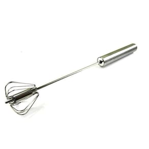 Batedor de Ovos Semi Automático em Aço Inox Ke Home Como usar: O batedor de ovos semi automático que faz todo o trabalho em um quarto do tempo para você, sem o uso de qualquer eletricidade ou baterias. Lâminas de aço inoxidável giram quando você pressione-o para baixo no sentido horário e quando você liberá-las, as molas volta para cima em um Inversão de rotação resultando muito mais agilidade do que mistura simplesmente. Mistura e espuma em segundos. Lave-o pelo menos duas vezes por semana, utilizando detergentes neutros e esponja macia. Evite usar produtos abrasivos, eles podem causar riscos e arranhões nos utensílios. Especificação: - Material: aço inoxidável, - Cor: prata, - Tamanho: comprimento 31 cm, diâmetro 6 cm.