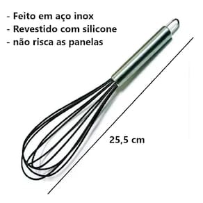 O batedor é indicado para bater ovos, fazer molhos, maioneses entre outros alimentos.
