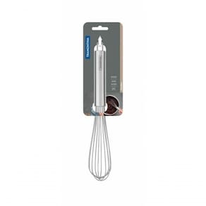 Batedor Tramontina Marffim Em Aço Inox 32cm Para preparar bolos com mais facilidade e exatidão, utilize o Batedor Tramontina Marffim em Aço Inox 32 cm. Com a peça você bate misturas sem grande esforço, já que o item apresenta alta resistência e durabilidade, pois é totalmente fabricado em aço inox. Além disso, você pode levá-lo ao lava-louças diariamente, sem comprometer a qualidade do produto. Muito mais facilidade e qualidade na preparação das suas receitas você tem com Tramontina! Recomendações de Uso: - Use apenas sabão ou detergente e uma esponja macia. Outros tipos de produto como palha de aço, poderão riscar ou prejudicar o brilho da peça. - Enxágue cada item a fim de remover totalmente os resíduos dos produtos de limpeza, que, por serem abrasivos, podem danificar o inox. - Sempre que possível, use água quente, pois renova o brilho da peça. - Após a lavagem, enxugue imediatamente a peça, caso contrário, as substâncias químicas da água (cloro) poderão causar manchas. - Evite atrito entre as peças durante o processo de lavagem e no armazenamento, para mantê-la sem riscos. - Evite o do produto com superfícies quentes, pois elas provocam a descoloração do material. - Não guarde a peça em locais úmidos. A umidade também provoca manchas. Informações Adicionais: