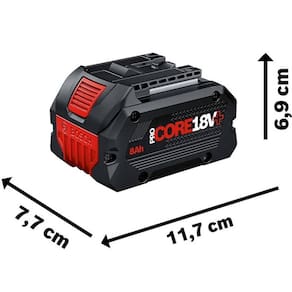 A Bateria de Íons de Lítio Bosch ProCORE 18V 8,0Ah foi desenvolvida para entregar máxima performance em aplicações profissionais exigentes. Compacta e leve, ela oferece mobilidade e conforto sem comprometer a potência, sendo ideal para quem busca alto rendimento com praticidade no dia a dia de trabalho.