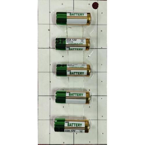 Bateria A23 12V Super Power Com 5 Unidades Especificações técnicas; Características do produto: Capacidade mah : 38 mah Modelo: 23a / a23 / 23ae também conhecida como: lrv08 / l1028 / rvo8 / 23a / ms21 / Mn21 / e23a / k23a / v23ga / 8lr932 / 8lr23 / vr22 / 8f10r Marca: gp ultra high voltage Indicada para: controles remoto de carro, alarmes, portões, Lanternas, brinquedos etc... Vida útil: descartável Medidas aproximadas do produto: Comprimento 0,9cm x altura: 2,8cm x largura: 0,9 cm Peso:50,00 gramas : 3 meses não abrange mal-uso ou gasto de bateria