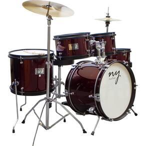 Bateria Acústica Infantil Completa, possui ferragens com acabamento cromado, material de ótima qualidade e resistente, ideal para bateristas iniciantes.