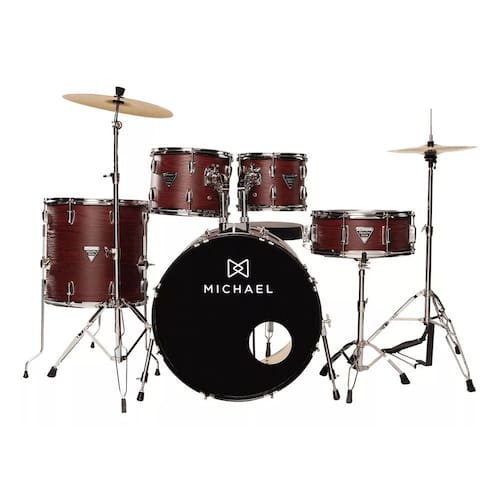 A bateria acústica Michael Trinity DMT322, com bumbo 22, se destaca pelo visual arrebatador e timbre moderno. É construída com casco em poplar e vem com 5 peças, com destaque para os tons rasos e a caixa com pele porosa. Possui ainda pés extralongos no surdo e telescópico no bumbo, além de caixa com automático. Sua configuração é completa! Já vem com estante de prato, máquina de chimbal, pratos (hit hat e crash), pedal de bumbo e par de baquetas! É só abrir a caixa, montar e sair tocando.