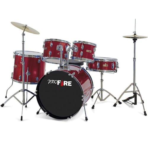 Bateria Acústica Pro Fire 20 Vermelha Ferragens CromadasEspecialmente desenvolvida para atender jovens músicos, grupos de igrejas, estúdios e profissionais que necessitam de um kit mais versátil, com qualidade e para o seu dia a dia.Especificações técnicas:- Marca: Pro Fire - Cor: Vermelha - Ferragens Cromadas - Bumbo: 20x16 - Tons: 10x8, 12x9 - Surdo: 16x4 - Caixa: 14x5,5 - Madeira: Hard Poplar - 01 Par de Cymbal 12 - 01 Ataque 14 - 01 Máquina de Cymbal - 01 Estante de Caixa - 01 Estante de Prato Reta - 01 Pedal de Bumbo - 01 Banco