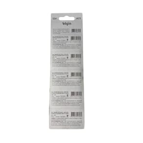 As baterias alcalinas A23 Elgin são usadas para controle de portão, calculadoras, relógios, brinquedos, timers, eletrônicos, lanternas e outros dispositivos. As Pilhas e Baterias Elgin são testadas periodicamente por laboratórios credenciados pelo INMETRO, para garantir a qualidade e conformidade com a resolução Conama 401. As Baterias Elgin não agridem o meio ambiente porque têm 0% de metais pesados em sua composição.