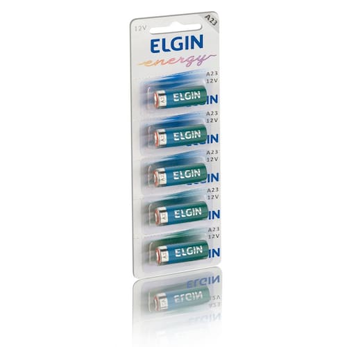 Marca: Elgin. Modelo: 82263. Voltagem: 12 V. Blister com 5 unidades. Indicadas para equipamentos que requerem descargas de energias rápidas e fortes, como brinquedos, câmeras fotográficas digitais, MP3 players, lanternas. Aprovadas pelo Inmetro, são testadas periodicamente por laboratórios credenciados pelo Inmetro, para garantir a qualidade e conformidade com a resolução Conama 401. Colaboram para a preservação do meio ambiente, pois não apresentam metais pesados em sua composição com 0% de Cádmio e Mercúrio. Dimensões: 28.3 x 10.15 mm. Peso: 23 g. Itens Inclusos: 5 baterias tipo A23. Ean: 7897013538131