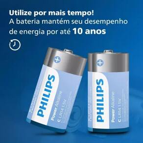 As baterias alcalinas Philips Tipo C (média) oferecem desempenho duradouro e confiável para os seus dispositivos que exigem mais energia. Ideais para lanternas, brinquedos, rádios portáteis e outros eletrônicos de médio consumo, elas garantem funcionamento consistente e seguro.
