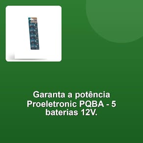 Seja para uso doméstico ou profissional, a Bateria Alcalina Proeletronic PQBA-23A05 oferece um desempenho robusto e consistente, atendendo perfeitamente às necessidades de dispositivos eletrônicos que exigem energia confiável e duradoura. Escolha Proeletronic e garanta mais potência para o seu dia a dia!