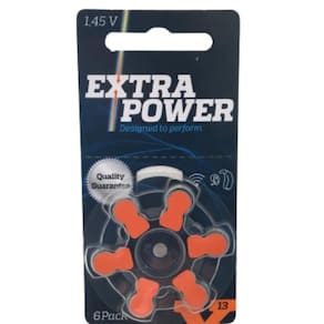 Bateria auditiva 13 pr48 extra power 60 baterias 10 cartelas as pilhas ou baterias extra power garantem energia para seu aparelho auditivo com alta durabilidade e voltagem estável, proporcionando excelente amplificação e a melhor experiência auditiva em seu dia a dia. Elas são universais e podem ser utilizadas em qualquer aparelho auditivo de diferentes marcas, é preciso apenas identificar o modelo/tamanho que o aparelho utiliza. São facilmente identificadas pela cor do selo e/ou etiqueta. Ficha técnica: