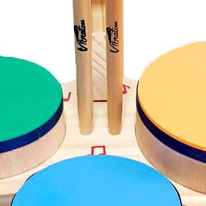 Bateria Baby Madeira - P3695 - Vibratom Bateria Infantil - Bateria em Madeira - 02 Tons - 01 Prato - 02 Baquetas Medidas Aproximadas - 60 cm Altura - 45 cm Largura - 28 Comprimento Os tons são construídos com uma lâmina de madeira como a dos cajons revestido com EVA. O rebote lembra o do pad de estudos. O som fica agradável, mas não exagerado. O produto fica com excelente resistência. Idade indicada: a partir de 3 anos. Utilizamos materiais seguros, duráveis e ecológicos. Dimensões aproximadas do produto: C x A x L 69 x 27 x 10 cm. Prazo de garantia: 03 meses de garantia legal. Observe atentamente a idade recomendada para o brinquedo. Pode conter partes pequenas que podem ser engolidas e perigosas. Fotos ilustrativas as cores e modelos podem sofrer alterações sem aviso prévio. A Vibratom tem uma história de mais de 50 anos com o desenvolvimento das crianças através da musicalização que a estimula à socialização e à evolução cultural e intelectual. Essa é uma responsabilidade que nos motiva a buscar a excelência da qualidade de nossos produtos desde a seleção das matérias primas até o processo de produção, que envolve funcionários qualificados a fim de garantir o melhor aproveitamento dos alunos e professores.