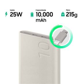 Carregamento Super Rápido até 25W (PD3.0) . Capacidade de 10,000mAh . Ampla compatilidade com tecnologias de carregamento (USB-PD, SFC, AFC, QC 2.0) . Leds (4x) indicadores para verificação de situação . Acabamento em material reciclável Eco sustentável