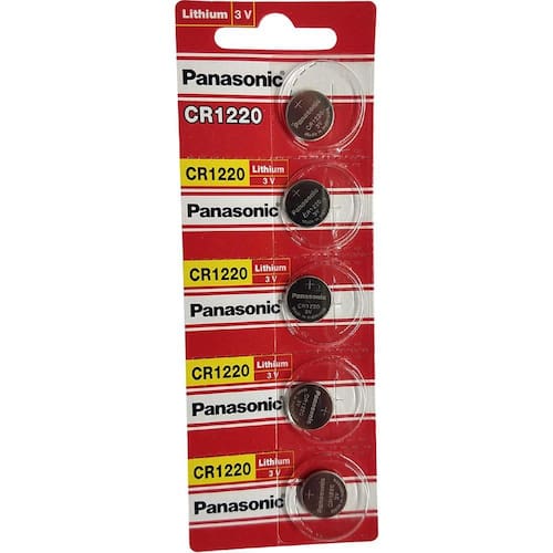 Bateria Cr1220 Panasonic - Lithium 3V Cartela 5 Unidades ESPECIFICAÇÃO: Pilha PANASONIC CR 1220 Voltagem: 3 V Capacidade: 36 mAh Dimensões: Diâmetro: 12,5 mm Espessura: 2,0 mm Peso: 0,8 g ACOMPANHA O PRODUTO: 1 Cartela contendo 5 unidades de CR1220 GARANTIA: 90 dias a partir do recebimento
