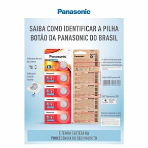 Bateria CR2032 Botão Panasonic Kit C/10 Cartelas com 5 unidades cada.