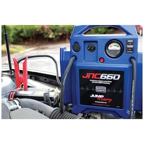 1.7lificadores de pico 4ères de arranque. Carregador embutido. Tipo de Carregador Automático A tecnologia de baterias PROFORMER foi projetada para fornecer saída de potência extremamente alta, potência de acionamento prolongada e uma longa vida útil cabos AWG n 2 para serviços pesados de 46 polegadas cobre isolado voltímetro fornece status de carga da bateria onboard tomada DC para alimentar acessórios de 12 volts Entrada CC para recarregar a bateria interna Quando a unidade não estiver em uso, recomendamos que a bateria seja carregada pelo menos a cada 30 dias. Jump N Carry JNC660 Arrancador de Salto de 12 Volts Ampère de 1700 Marca: Não Informado