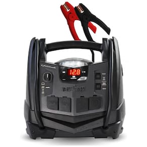 Oferece 1200 Peak Amps para saltar iniciar o seu veículo Características 2 120V AC e uma porta USB para poweer seus dispositivos Inclui compressor de ar 150PSI com calibre de pressão, bicos e área de zenamento Display digital monitora o nível de carga da bateria interna e tensão de bateria do veículo Funciona com motores V8. Construído para início de salto pesado, o SJ1332 é perfeito para o motor de partida de baterias robustas, bem como fornecer energia AC em movimento. A partir da linha Jump Starters da Schumacher, esta unidade oferece 2 saídas AC, uma porta USB e um compressor de ar. Esta unidade fornece 1200 Peak Amps para dar partida em veículos em emergências. O mostrador digital monitora o nível de carga da bateria interna e a voltagem da bateria do veículo. Inclui luz embutida com LEDs ultra brilhantes com eficiência energética. A Schu Eco Energy atende aos mais altos padrões do setor Marca: Não Informado