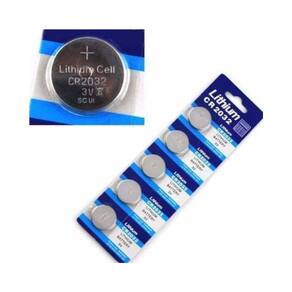 Bateria de Lítio 3V Cartela com 5 Peças -Modelo: Cr2032-Capacidade Nominal: 3V-Material: Lithium-Contém: 5 Baterias cada cartela-Aplicação principal: Relógios, Calculadoras, Computadores portáteis, controle remoto de veículos, etc.-Bateria de lithium não recarregável.-Produto de alta qualidade.Item Incluso:- 1 cartela de bateria CR2032 Marca: Tudo em Caixa