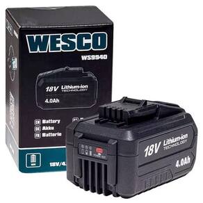 Bateria De Lítio Recarregável 18V 4,0 Amperes WS9940 WescoA Bateria De Lítio Recarregável 18V 4,0 Amperes WS9940 Wesco, é indicada para carregamento rápido e eficiente de ferramentas Wesco. Permanece com carga por mais tempo mantendo o funcionamento do equipamento com excelente performance e custo benefício.Detalhes Técnicos:- Modelo: WS9940- Marca: Wesco- Voltagem: 18V- Capacidade: 4,0 Ah- Tipo de bateria: 4,0 Ah Lithium-ion- Indicador LED de carga da bateria- Vida útil longa- Indicador de carga- Não acompanha carregadorCompatível com todas as linhas de 18V:- WS2921K2- WS2937K2- WS2390K2- WS2938K2- WS2319- WS2972- WS2324- WS2382- WS2320- WS2990.9- WS2940K2- WS2806.9- WS2933- WS2305.9- WS2934.1- WS2316.9- WS2355.9- WS2932- WS2302.9- WS2950.9- WS2941.9- WS2943.9- WS2999.9- WS8164.9- WS2961.9- WS8511.9- WS2942- WS8800.9Conteúdo da embalagem:01 Bateria De Lítio Recarregável 18V Wesco*Garantia: 12 meses contra defeitos de fabricação.*Objetos de decoração das fotos não estão inclusos.*As cores podem variar conforme monitor/smartphone utilizado para a visualização do anúncio.