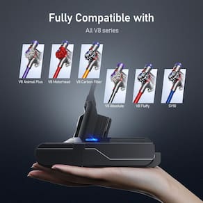 - MAIS POTÊNCIA, MAIS DURABILIDADE: A bateria v8 de longa duração atende às necessidades de limpeza profunda de sua sala grande. A bateria de 6500mAh para dyson V8 está equipada com um chip de bateria premium atualizado. A bateria de substituição V8 tem maior duração e carregamento mais rápido.