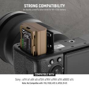 NP-FZ100?Uma opção alternativa igualmente poderosa para NP-FZ100, este acessório de câmera recarregável de íon de lítio é perfeitamente compatível com Sony A1, A9, A9 II, A7R III, A7R IV Câmeras digitais sem