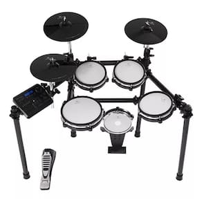 Pads de Alto Nível Toque de forma realista com Pads em Dual Zone construídos em Mesh Ultra Fina. Sinta uma pele realista, com rebote e alta sensibilidade. Dual Zone: Você poderá tocar no aro, ouvindo um timbre metálico, como em uma bateria de verdade