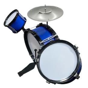 Bumbo: 14cm Altura 45cm Diametro Tom 1: 10cm altura x 20cm Diametro Tom 2: 10cm altura x 16cm Diametro Prato: 19Cm Pedal: 20Cm 2 Baquetas: 24 Cm Bateria Infantil Instrumento Musical de Brinquedo 3 Tambores