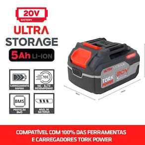 Bateria lithium 20v alto desempenho 10c 5ah - super tork be-1020-5ah-10c A bateria ultra storage tork power foi projetada para quem exige desempenho máximo em ambientes industriais. Com capacidade de 5ah e tecnologia de recarga rápida, ela oferece a autonomia necessária para manter seus equipamentos operando com eficiência. - características: Tensão da bateria: dc-20v Dimensões: 113x80x72mm Peso: 0,740kg Voltagem: 20v Capacidade: 5 ah Tempo de carregamento: 1 h Tecnologia de célula: lítio Corrente: 5.0ah Potência: 100w Capacidade da célula: 10c Ferramentas compatíveis Aspirador de pó Chave de impacto Esmerilhadeira Furadeira de impacto Lanterna Martelete Parafusadeira de impacto Rebitadeira Serra tico-tico - itens inclusos: 1 bateria lithium 20v alto desempenho 10c 5ah - : 3 anos de de fábrica. Marca: super tork Modelo: be-1020-5ah-10c Código de barra: 7898533565881 Imagens meramente ilustrativas, podendo sofrer pequenas alterações. Todas as informações divulgadas são de responsabilidade do fabricante/fornecedor Marca: Não Informado Ean: 7898533565881