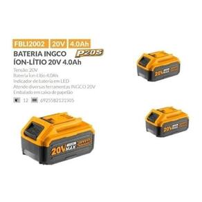 Bateria lithium-ion4.0ah 20v ingco Bateria ingco ion litio 4,0 ah Descrição do produto : Modelo : fbli2002 Tensão : 20v Indicador de bateria em led Atende diversas ferramentas ingco 20v