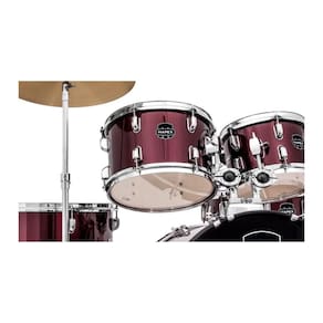 A cor Burgundy da bateria adiciona um toque de elegância e distinção ao visual do instrumento.