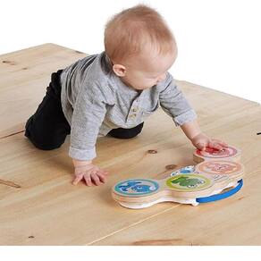 A Bateria da Baby Einstein torna qualquer lugar um palco para sua pequena estrela da música. É um brinquedo musical para se divertir em passeios, viagens e em casa. Músicas e luzes chamarão e manterão a atenção do seu pequeno O Drum Mode e o Melody Mode do brinquedo permitem que o bebê alterne entre tocar junto com músicas clássicas ou mudar para seu próprio ritmo. Os botões de controle de volume permitem que você abaixe ou aumente a música quando precisar.