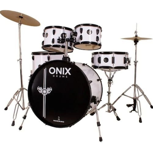 Bateria Nagano Onix Smart 22 RKW Rock White Branco A Nagano Drums entende a necessidade do mercado, assim, trabalharam para criar uma nova marca de bateria voltada para produtos de entrada. As baterias Onix trazem muitos diferenciais e características de baterias de nível superior. Confira os detalhes, se empolgue com o visual, e seja um baterista Kit de ferragem completo: - Pedal de bumbo, máquina de chimbal, estante de caixa, estante de prato reta e banco Pratos inclusos Acompanha 1 Hi hat de 14 e 1 /Ride de 16 Características: - Pé de bumbo telescópico - Caneca de fixação reforçada - Pele de bumbo com anel abafador - Cascos de 7mm - Caneca tipo abraçadeira - Automático de gaveta - Tom holder - Joint Ball - Travas com memórias - Banco reforçado com base fundida - Estante de caixa com cesto - Borboleta SafeCymbals - Pedal de bumbo profissional com base de metal, corrente dupla e sistama de mola com rolamento Configuração: - Tons: 10 x 6,7 / 12'' x 7,5 - Caixa: 14 x 5,5 - Surdo: 16 x 15 - Bumbo: 22 x 17
