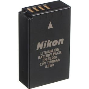 Bateria nikon en-el20a A bateria de íon de lítio recarregável en-el20a da nikon é uma bateria de 7,2 v sobressalente ou substituta com capacidade de 1110 mah para a câmera digital sem espelho nikon 1 v3. As baterias de íons de lítio são fontes de energia de longa duração que podem ser carregadas ou descarregadas continuamente sem desenvolver efeito de memória. Pode ser carregado com o carregador de bateria mh-29. Compatibilidade:Nikon en-el20Nikon 1 aw1Nikon 1 v3Nikon coolpix p1000Nikon coolpix p950