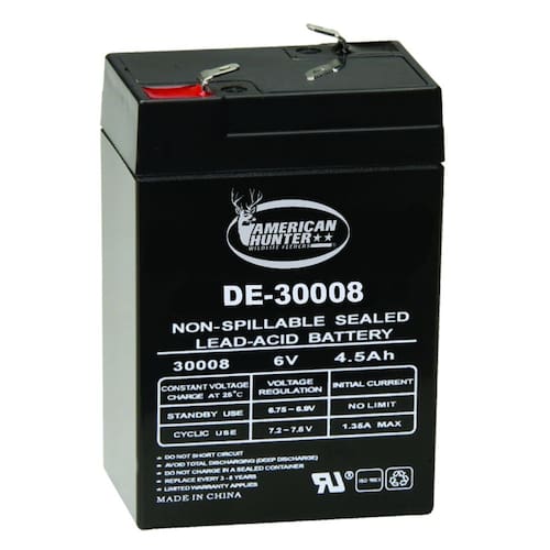 - Comumente utilizado para alimentadores de caça, patos motorizados, chamadas de jogos, faróis e holofotes - Bateria recarregável DE645DC 6V de 4,5 amp/h - Embalagem única