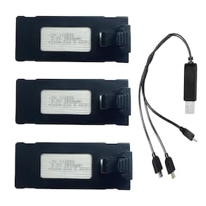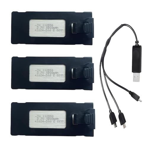 Especificações: Tensão: 3,7 V Capacidade: 1800mAh Peso: 19,8 g Dimensões: 72* 29* 12 mm Tipo de bateria: bateria de polímero de lítio Ampla compatibilidade: drone E88 E88PRO E99 E99PRO E525 P5 PRO P15 P15PRO LS-S1S V88 ou aeronave RC. O cabo do carregador USB pode ser conectado a um adaptador de 5V, um carregador portátil ou um laptop. Se você estiver voando ao ar livre ou usando drones durante viagens, mesmo com espaço limitado para bagagem, você pode facilmente armazenar e substituir baterias. A bateria de lítio de alta qualidade tem várias funções de proteção, como sobrecarga, descarga, sobrecorrente e curto-circuito, fornecendo energia confiável. A embalagem inclui: 3 baterias; 1 cabo de carregador USB. - Ampla compatibilidade: a bateria de 3,7 V 1800 mAh é para drone E88 E88PRO E99 E99PRO E525 P5 PRO P15 P15PRO LS-S1S V88. - Tamanho e peso: Esta bateria mede 72 x 29 x 12 mm; Peso: 19,8 g/1 peça. Pode ser substituído a qualquer momento, fazendo com que seu drone não seja mais limitado pelo tempo e espaço. - Alto desempenho: com uma capacidade de 1800 mAh, pode fornecer energia duradoura e estável para o seu drone. Você poderá desfrutar de experiências de voo mais longas. - Qualidade do produto: Feita de materiais de alta qualidade, esta bateria oferece desempenho confiável e longevidade para prazer contínuo. - Carregamento rápido: O produto vem com um cabo de carregador USB que pode carregar três baterias simultaneamente. O cabo do carregador USB pode ser conectado a um carregador portátil, laptop ou adaptador de 10 W (5V/2A).