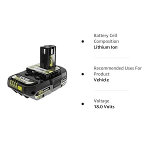 Sua bateria RYOBI ONE+ 18V de íons de lítio de 2Ah de alto desempenho oferece até 2 vezes mais tempo de funcionamento, 30% mais energia e funciona mais frio em comparação com nossas baterias de íon de lítio padrão para fornecer confiabilidade duradoura e melhor desempenho em mais de 225 ferramentas One+. Esta bateria de alto desempenho também possui os eletrônicos de bateria integrados mais avançados que monitoram tensão, temperatura e corrente para prolongar a vida útil da bateria. Quando você emparelha esta bateria de alto desempenho com qualquer ferramenta ONE + HP, a tecnologia avançada permite que eles se comuniquem para fornecer o melhor desempenho possível que alimenta aplicações mais pesadas e protege contra sobrecarga e superaquecimento. Ele funciona em temperaturas climáticas extremas e é projetado para ser resistente a impactos. Esta bateria possui um medidor de combustível LED integrado para verificar a carga da bateria em todos os momentos. O melhor de tudo, é uma parte do sistema RYOBI ONE+ de mais de 225 ferramentas sem fio que funcionam na mesma plataforma de bateria. Apoiada pela garantia do fabricante RYOBI de 3 anos, esta bateria inclui um manual do operador. Carregador vendido separadamente. Até 2 vezes mais tempo de execução Até 30% mais energia funciona mais frio. A tecnologia de alto desempenho apresenta os eletrônicos de bateria mais avançados para proteção contra sobrecarga e superaquecimento. Emparelhe com ferramentas One+ HP para desempenho otimizado. Medidor de combustível LED integrado para monitorar o tempo de funcionamento restante Fornece energia sem desbotamento em condições climáticas extremas. Monitora tensão, temperatura e corrente para maior vida útil da bateria. Estrutura robusta para proteger contra impactos. A composição química de íons de lítio resiste à drenagem quando ocioso. Encaixa-se facilmente Coloque e solte com botões de liberação rápida Recarregue em qualquer carregador 18V ONE + Parte do sistema RYOBI 18V ONE+ de mais de 225 ferramentas sem fio Garantia do fabricante de 3 anos inclui: (1) PBP003 18V ONE + Carregador de bateria de íons de lítio de alto desempenho 2,0 Ah vendido separadamente - Oferece até o dobro do tempo de funcionamento do lítio padrão - Fornece até 30% mais energia do que o lítio padrão - Mais de 225 UMA + ferramentas – Todas funcionam com qualquer bateria RYOBI ONE+ 18V