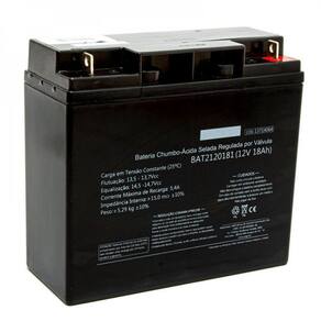 Especificações Técnicas: Marca: WEG Modelo: Bateria Selada para Nobreak 12V x 18AH Carga de tensão constante (25C) Flutuação: 13,5 - 13,7Vcc Equalização: 14,5 - 14,7Vcc Corrente Máxima de Recarga: 5,4A