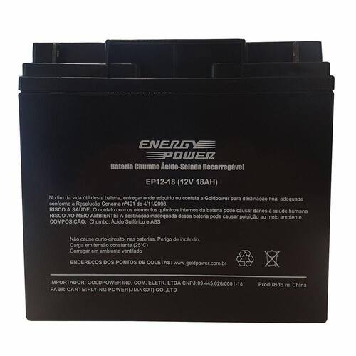 CONTEÚDO DA EMBALAGEM: Bateria Selada EnergyPower EP12-18 12V 18Ah