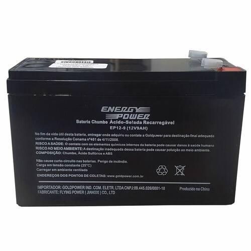 CONTEÚDO DA EMBALAGEM: Bateria Selada EnergyPower EP12-9 12V 9Ah