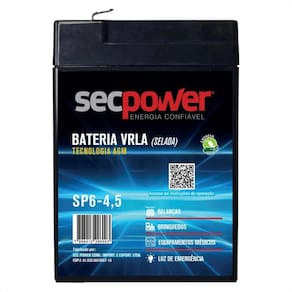 A Bateria Selada VRLA 6v 4,5ah Secpower é um produto de alta tecnologia e eficiência, projetado para fornecer energia de forma segura e confiável. Com vida útil de 3 a 5 anos, esta bateria chumbo-ácida VRLA AGM da marca Sec Power não requer manutenção, proporcionando praticidade ao usuário.